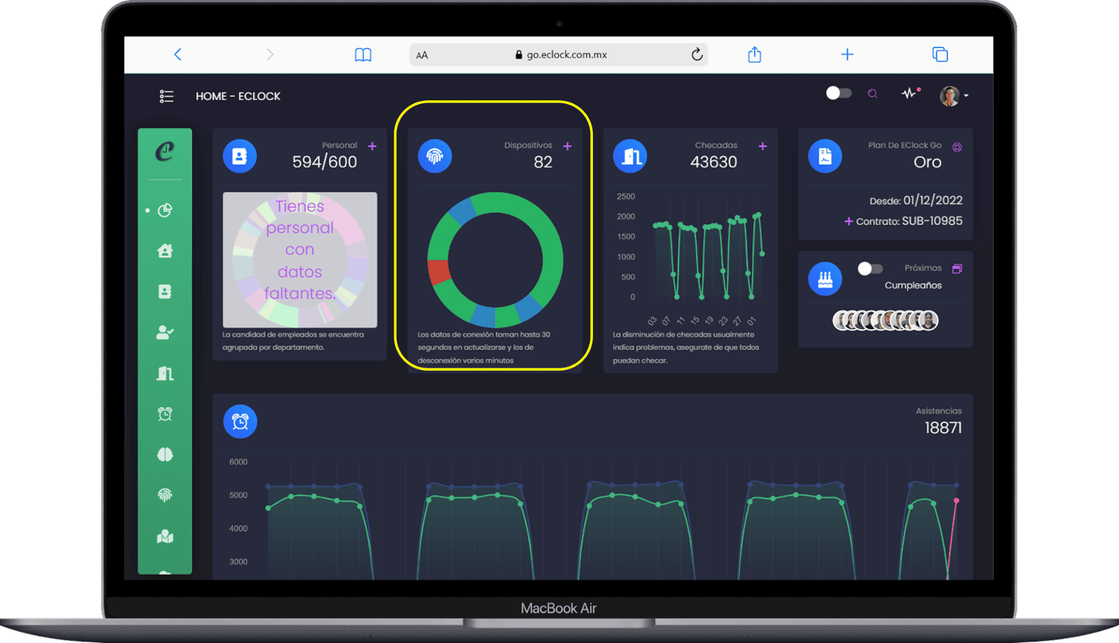 - Visión 360°: controla identidad, asistencia, incidencias y desempeño.