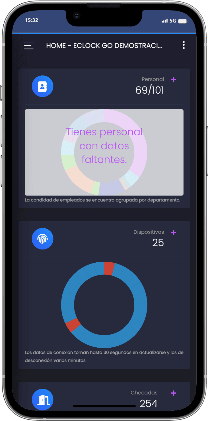 - Flexibilidad total para el registro app en cualquier dispositivo o biométrico.